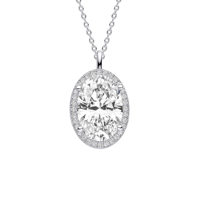 Designed to dazzle, this Pendant exude timeless glamour with its radiant sparkle and refined elegance. A captivating oval-cut Diamonfire zirconia takes centre stage, encircled by a shimmering halo of smaller zirconia stones that amplify its brilliance with every movement. Crafted in sterling silver and finished with a triple-plating of platinum, palladium, and rhodium, this pendant offers a luxurious high-shine finish. Whether worn alone for a sophisticated touch or paired with the matching earrings for a statement look, they are the perfect choice for unforgettable evenings and effortlessly glamorous moments.
