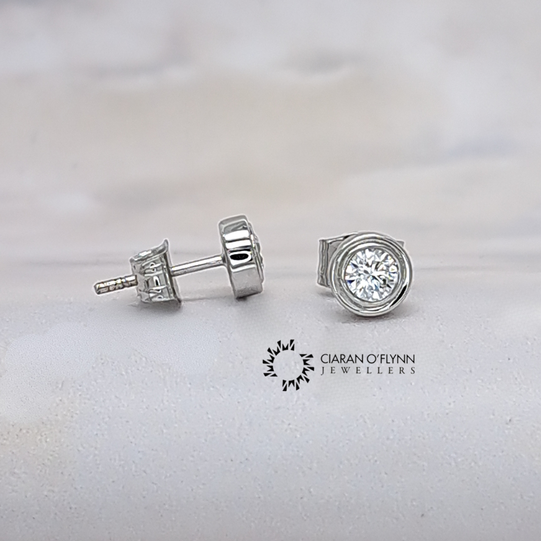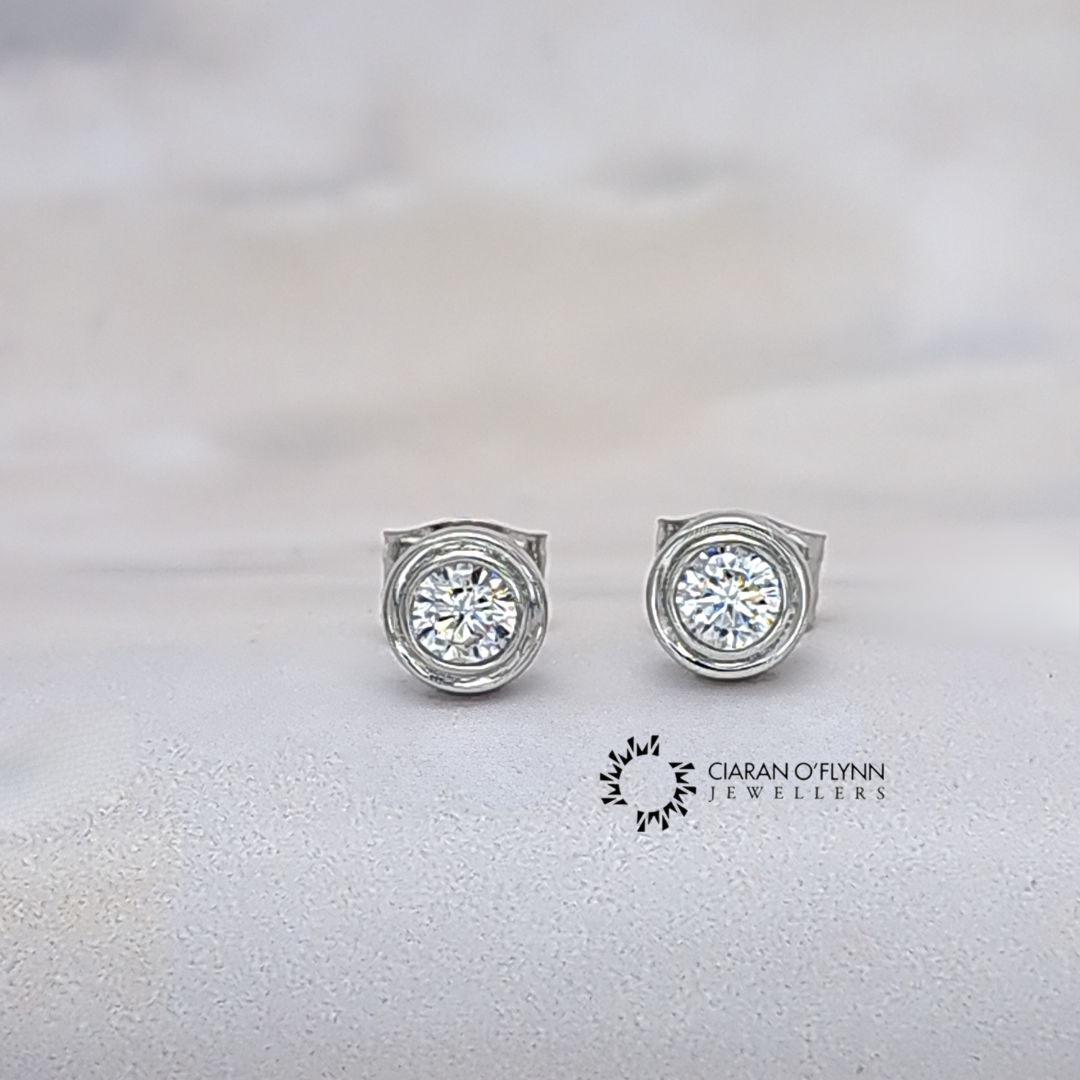 9ct White Gold CZ Stud Earrings Rub-Over | Ciaran O’Flynn