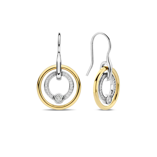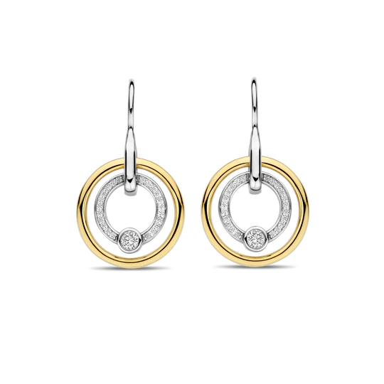 Regular price €129,00Indulge in timeless elegance with these TI SENTO gold-plated silver Earrings 7978ZY. Crafted from 925 sterling silver and plated with luxurious yellow gold, these earrings feature a captivating double circle design. The inner circle shimmers with a dazzling pave of cubic zirconia, drawing the eye to a central round white zirconia stone. The warm glow of the gold adds a touch of opulence to this already stunning piece. These exquisite earrings embody the symbol of infinity, representing endless energy and unity. They add a touch of luxury and sophistication to your look, offering a moment of escapism from the everyday. The circle shape speaks to the limitlessness of life. Let these earrings be the centrepiece of your ensemble and let their golden radiance elevate any outfit. Crafted with care for sensitive skin, these nickel-free and hypoallergenic earrings ensure lasting comfort and quality.