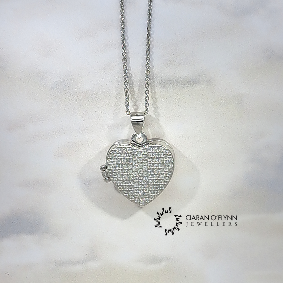 Sterling Silver Heart Locket with Pavé Cubics | Ciaran O Flynn