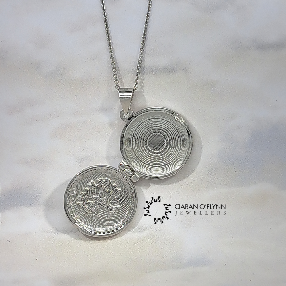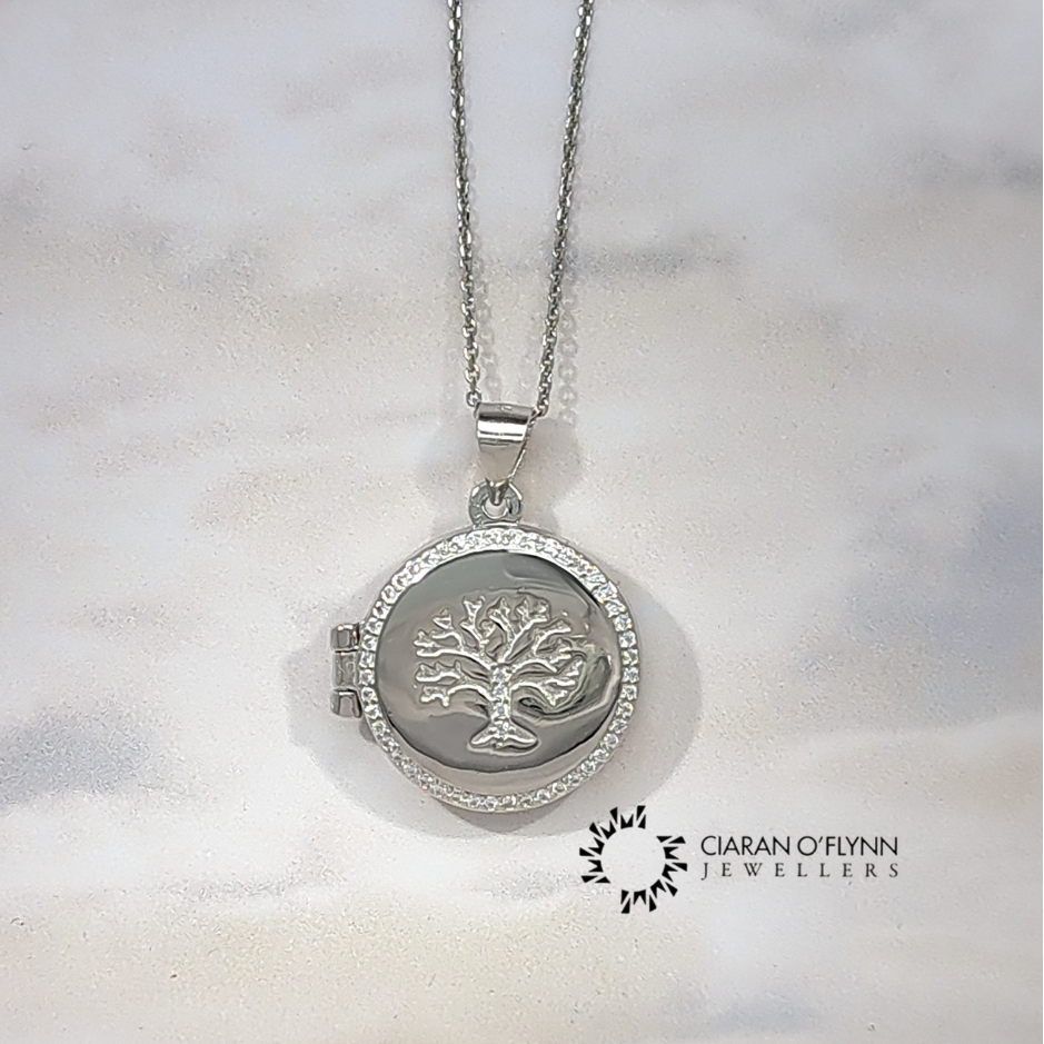 Sterling Silver Round Tree of Life Locket with CZ Border | Ciaran O Flynn