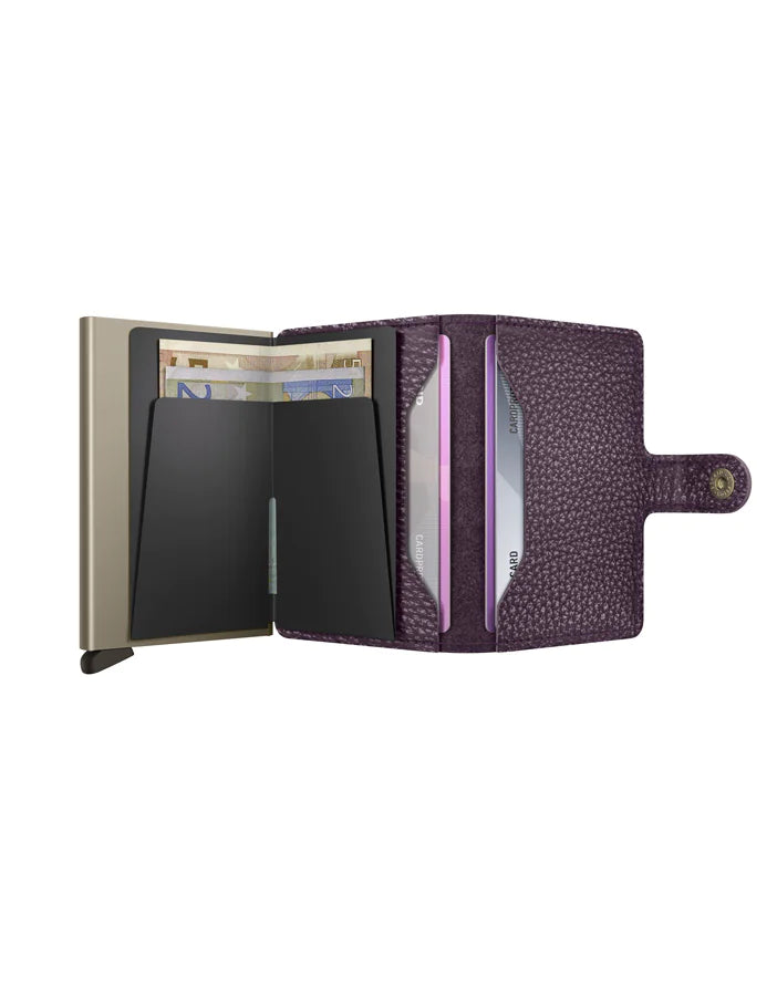 Regular price €79,00Small in size and surprisingly large in storage capacity, the Miniwallet combines the best of both worlds. The exterior holds banknotes, receipt and cards, while the aluminium Card protector allows you to slide out cards with one simple motion and protects them from bending, breaking and unwanted wireless communication. The pebble embossed leather, with a pebble grain texture. Made in Italy and inspired by high-end clothing fashion, Pebble is un-questionably stylish.