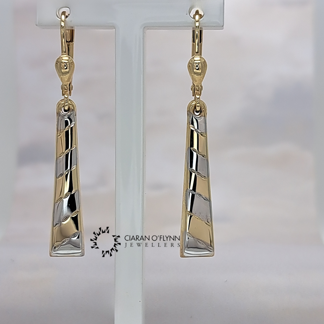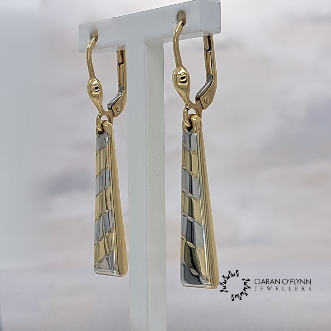 Regular price €270,00Add timeless elegance to your jewellery collection with these 9ct Gold Drop Earrings, exclusively available at Ciaran O’Flynn Jewellers. Designed with a stylish two-tone finish in white and yellow gold, these earrings offer versatility and sophistication, making them perfect for both daywear and evening occasions.