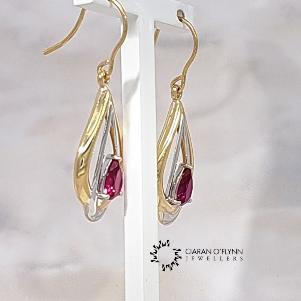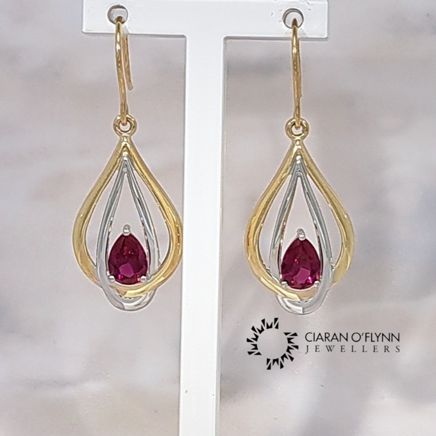 9ct Two-Tone Gold Ruby Drop Earrings | Ciaran O’Flynn Jewellers