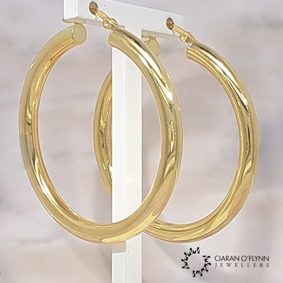 9ct Yellow Gold 43mm Hoop Tube Earrings | Ciaran O’Flynn Jewellers