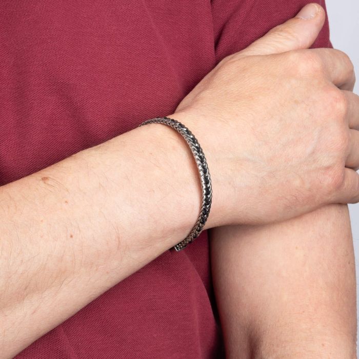 Regular price €49,00Bold and refined, this chain bracelet embodies strength and resilience with its intricately woven design. The durable stainless steel links are threaded with a sleek black nylon detail, inspired by the quiet power of the night. A fusion of rugged texture and contemporary style, this bracelet captures the essence of restorative darkness, where stillness meets strength. Finished with a secure clasp, it’s a versatile piece that can be worn alone for a minimalist edge or layered for a bolder statement.