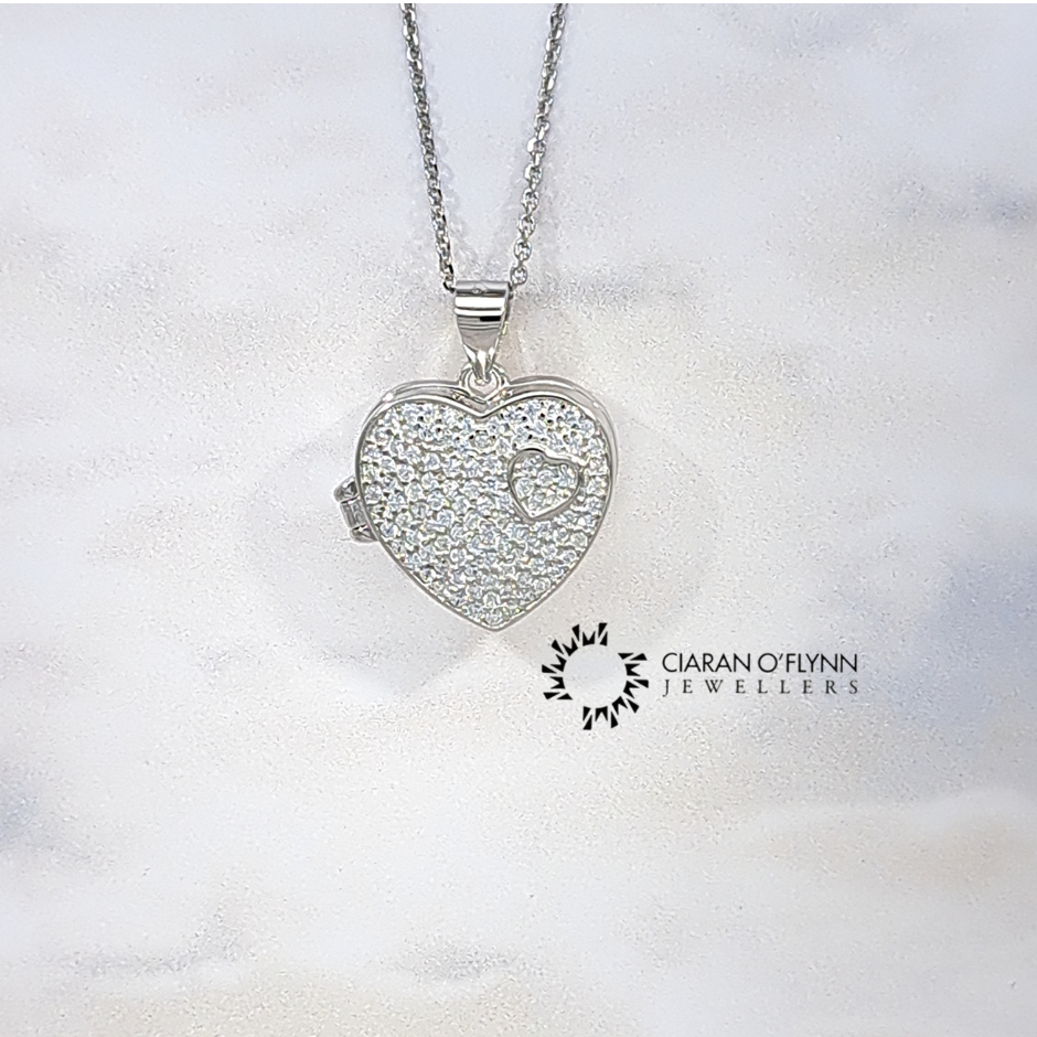 Sterling Silver Heart Locket with Pavé Cubics | Ciaran O Flynn